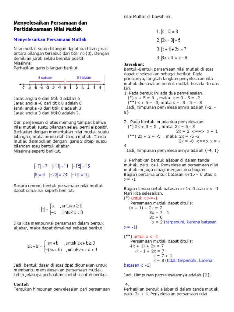 Related : Nilai Mutlak 4X-3 =- 2X-1 : Persamaan diatas merupakan persamaan nilai mutlak..